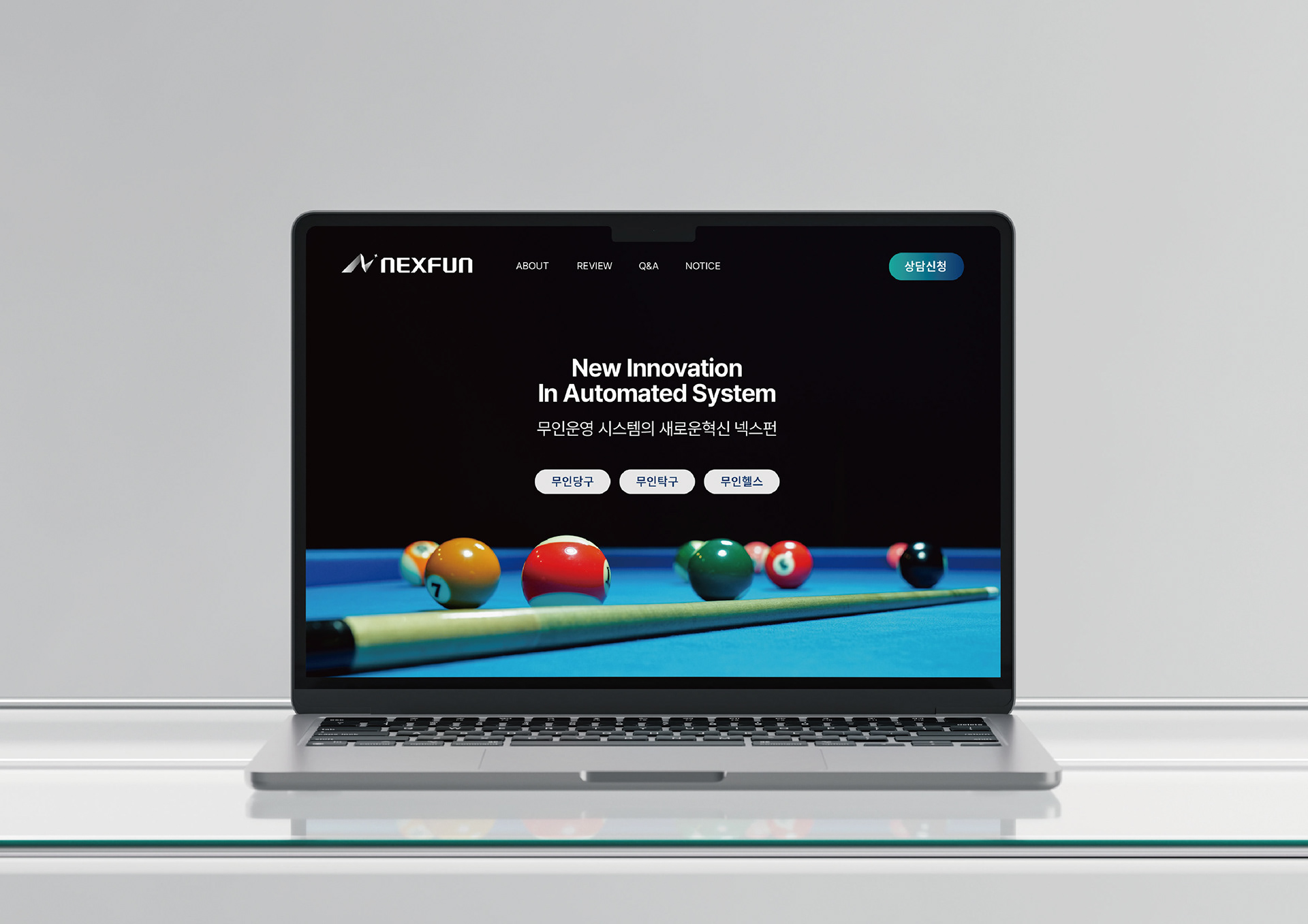 NEXFUN은 무인당구 NEXCUE와 무인탁구 NEXPING을 통해 누구나 부담 없이 스포츠를 즐길 수 있는 무인 스포츠 브랜드입니다.